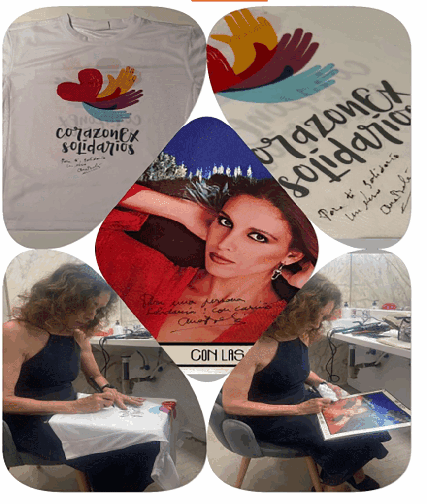 Vinilo y camiseta de CorazonEx Solidario firmados por Pastora Soler el 16 de mayo de 2025 en Badajoz.