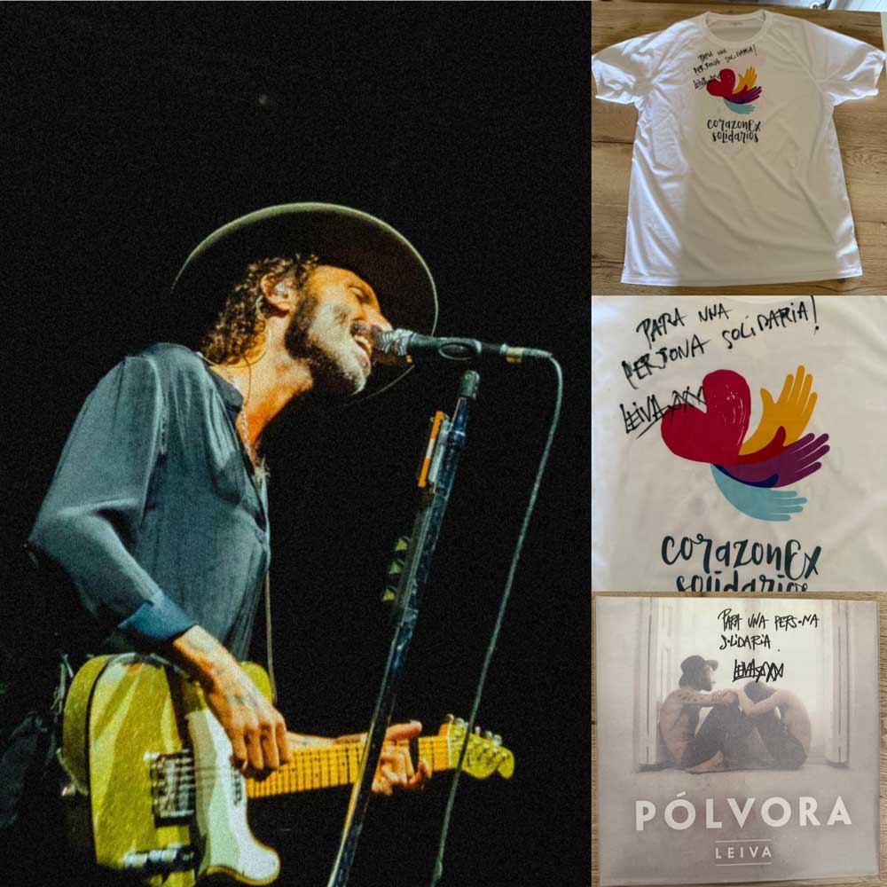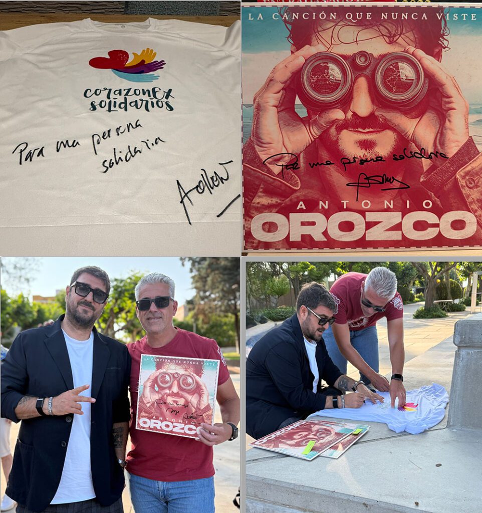 Vinilo y camiseta de CorazonEx Solidario firmados por Antonio Orozco el 6 de junio de 2025 en Mérida (Badajoz), durante su participación en el Stone Music Festival.