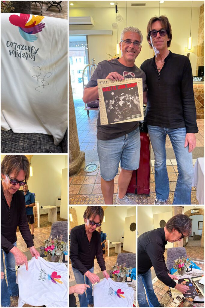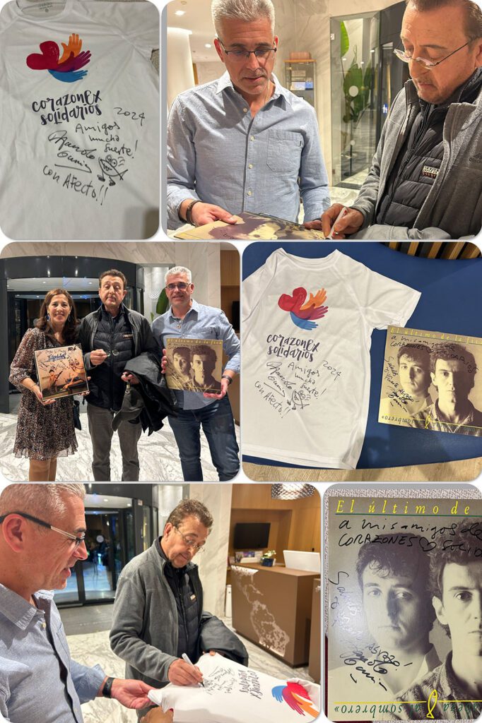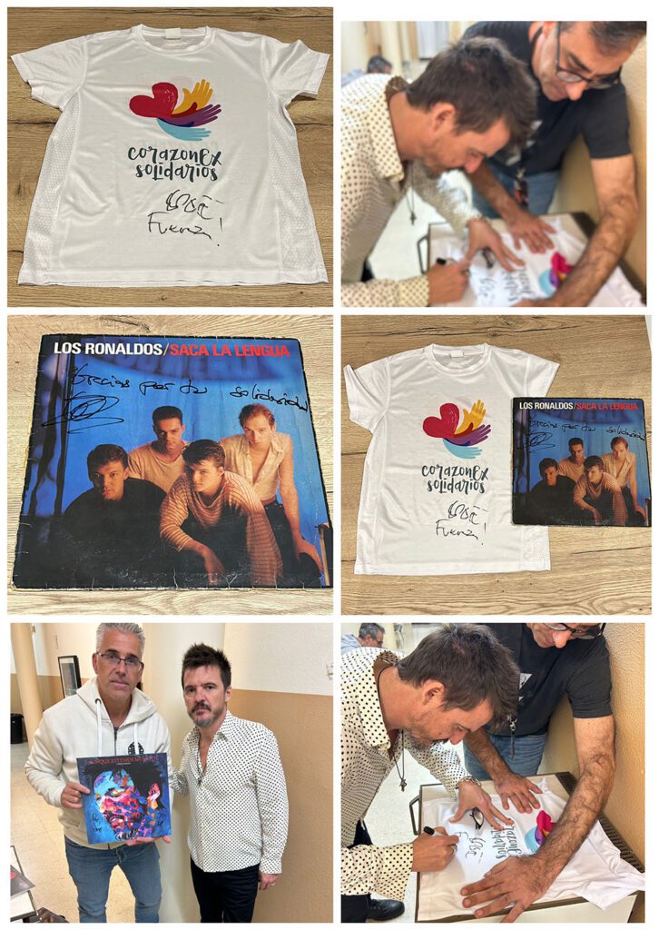 Vinilo y camiseta de CorazonEx Solidario firmados por Javier Gurruchaga y la Orquesta Mondragón el 30 de noviembre de 2024 en Badajoz.