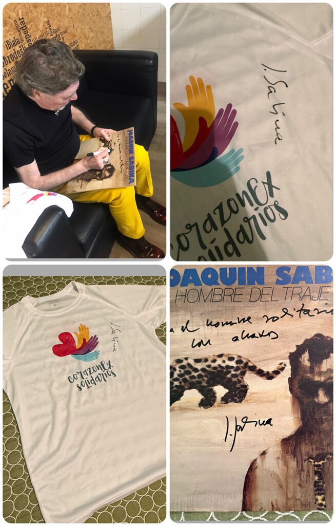 Vinilo y camiseta de CorazonEx Solidario firmados por Joaquín Sabina el 4 de julio de 2025 en Madrid, durante su gira de despedida Hola y Adiós.