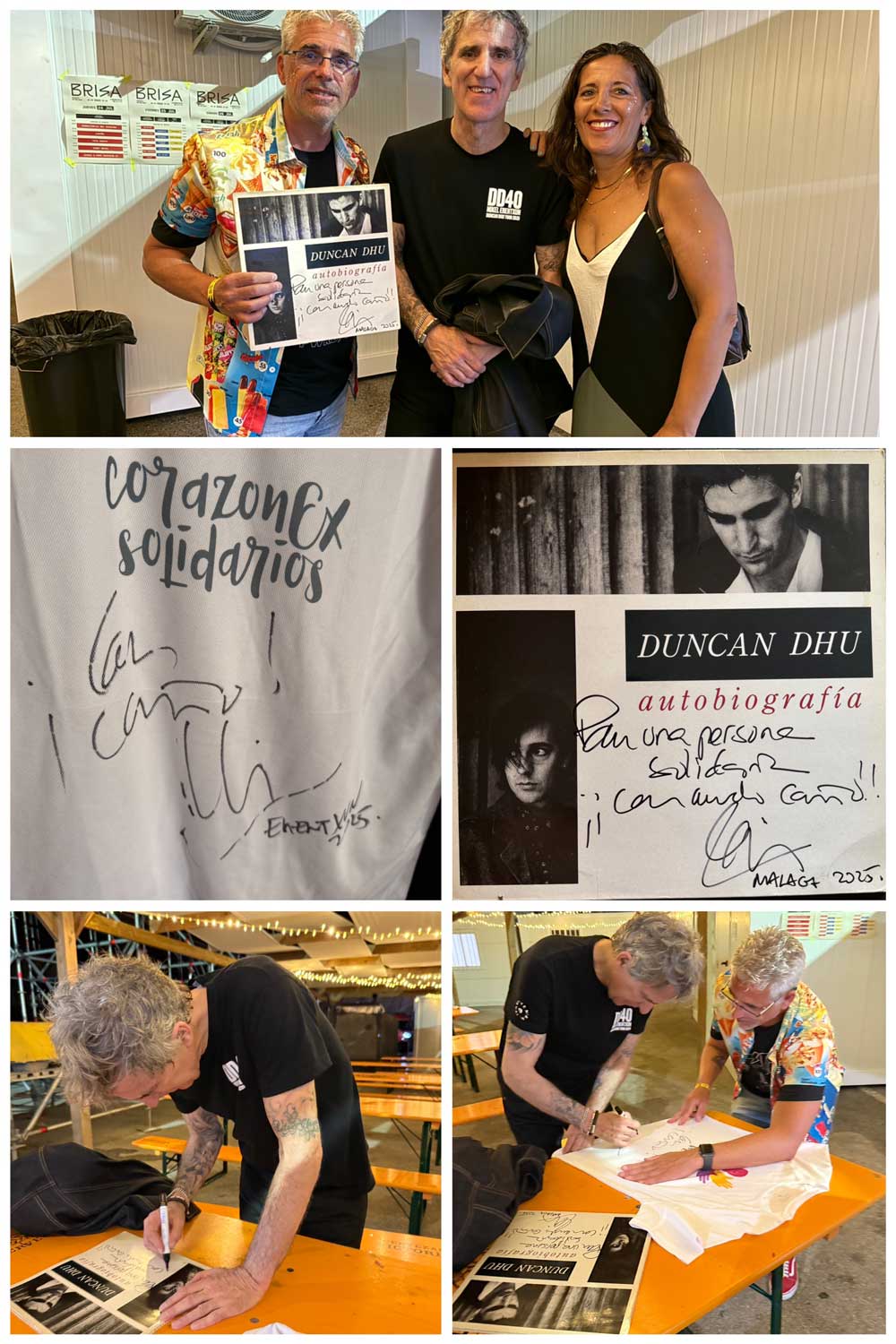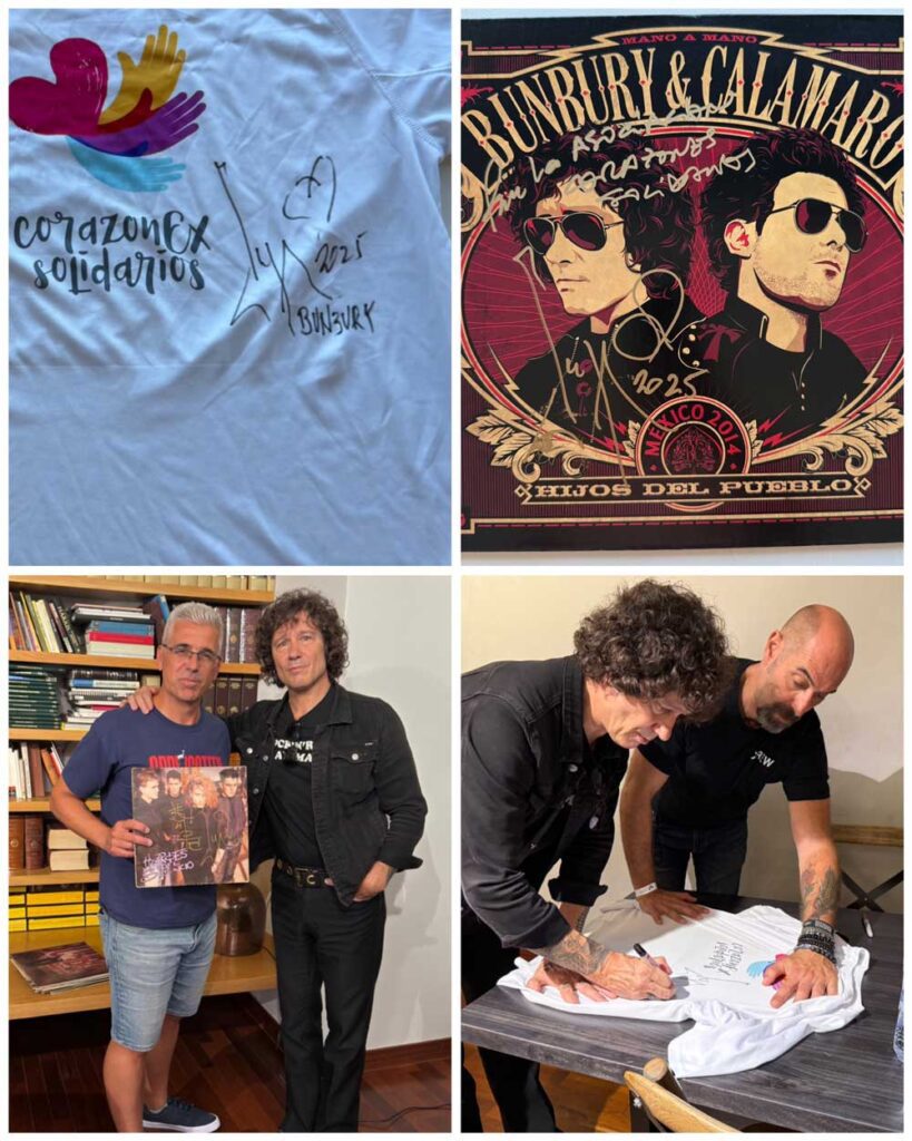 Vinilos y camiseta de CorazonEx Solidario firmados por Enrique Bunbury el 13 de septiembre de 2025 en Madrid, durante su gira Huracán Ambulante.