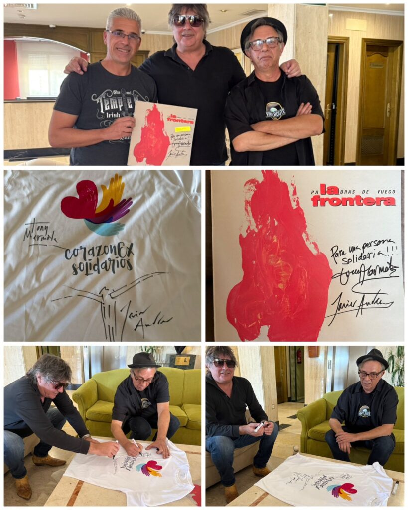Vinilo y camiseta de CorazonEx Solidario firmados por La Frontera el 27 de septiembre de 2025 durante su concierto en Badajoz.