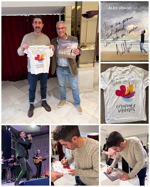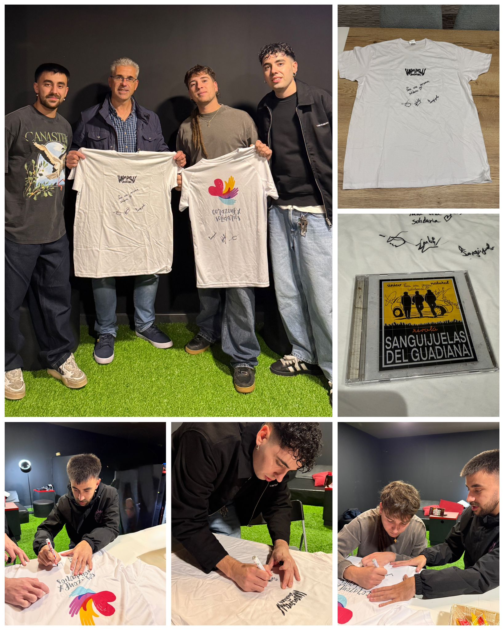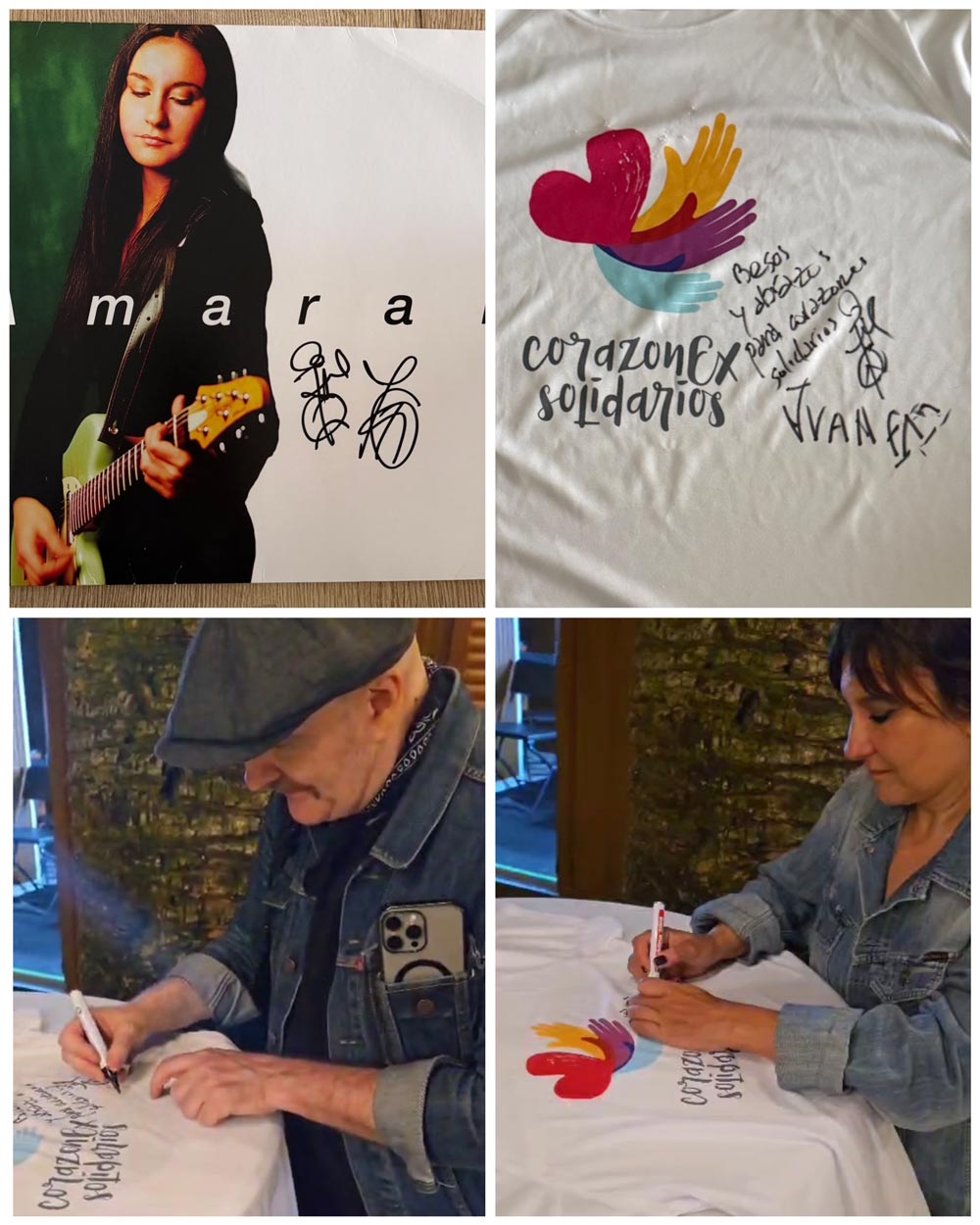 Vinilo y camiseta de CorazonEx Solidarios firmados por Álex Ubago durante su participación en la IV Gala Solidaria “Ningún niño sin juguete”, celebrada en Badajoz.