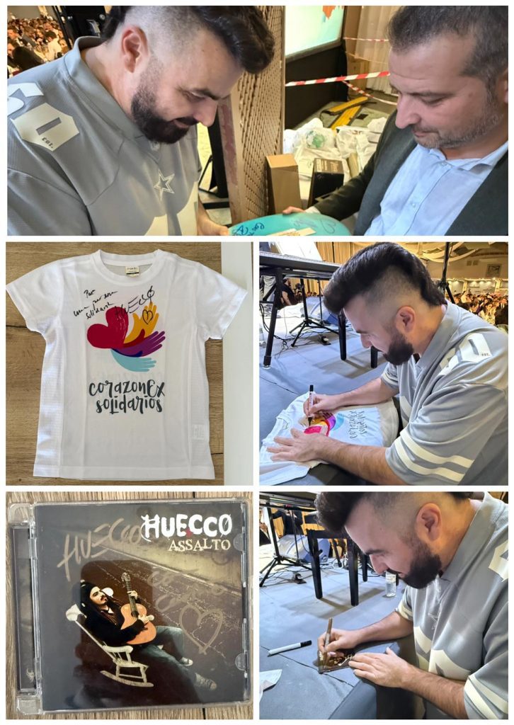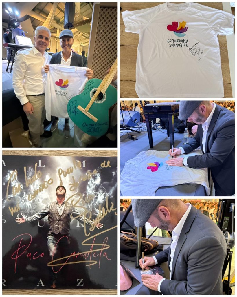 Vinilo y camiseta de CorazonEx Solidarios firmados por Paco Candela durante su participación en la IV Gala Solidaria “Ningún niño sin juguete”, celebrada en Badajoz.