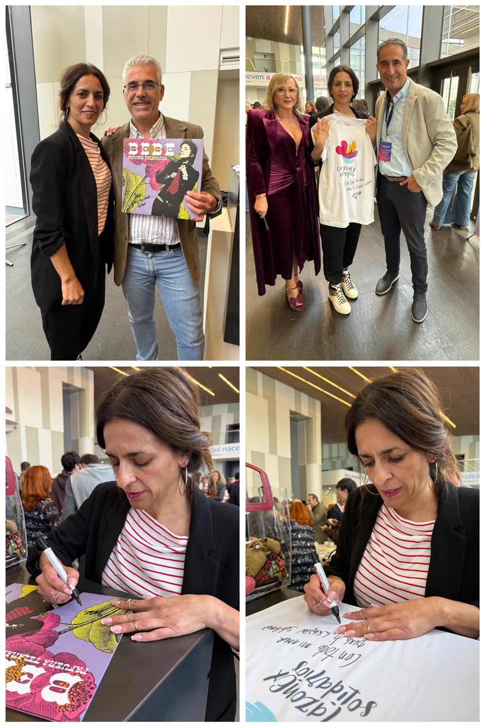 Vinilo y camiseta de CorazonEx Solidarios firmados por Bebe durante su participación en el VIII Congreso Mujer Ejecutiva 360º, celebrado en Badajoz el 7 de noviembre de 2025.