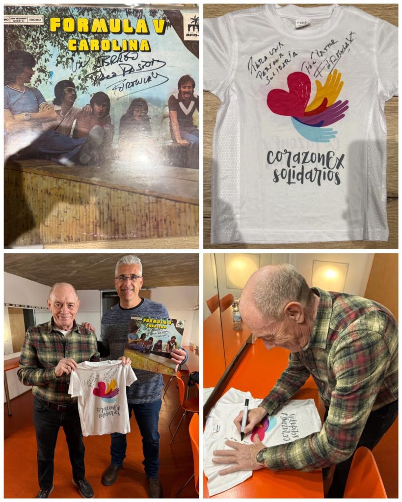 Vinilo y camiseta de CorazonEx Solidarios firmados por Paco Pastor (Fórmula V) el 27 de febrero de 2026 en Badajoz.