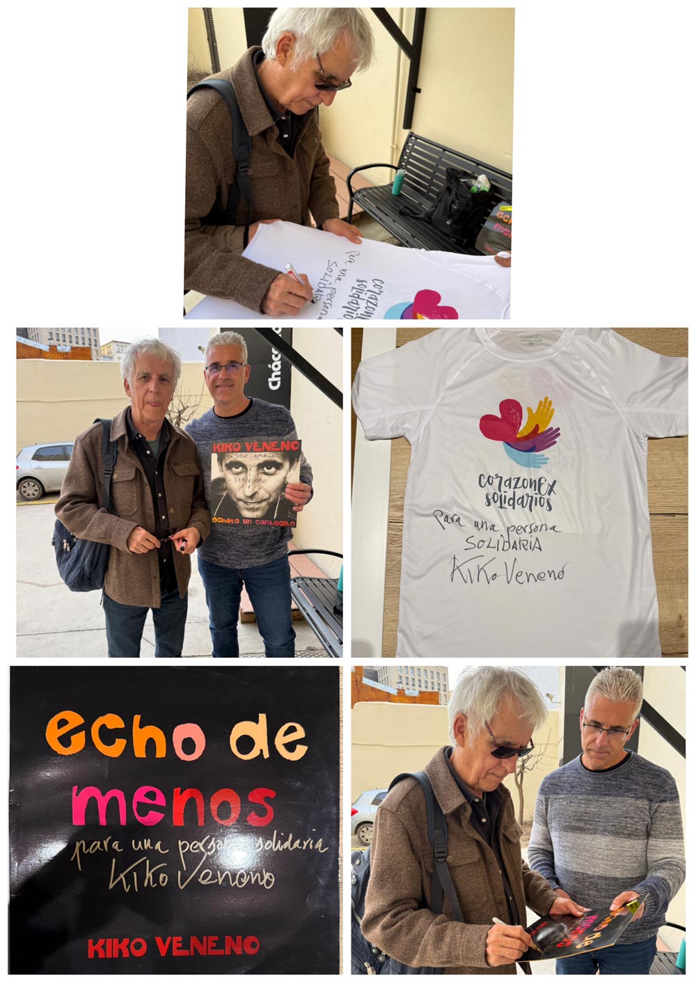 Vinilo y camiseta de CorazonEx Solidarios firmados por Manolo García el 16 de marzo de 2024 en Cáceres, durante su gira de teatros.