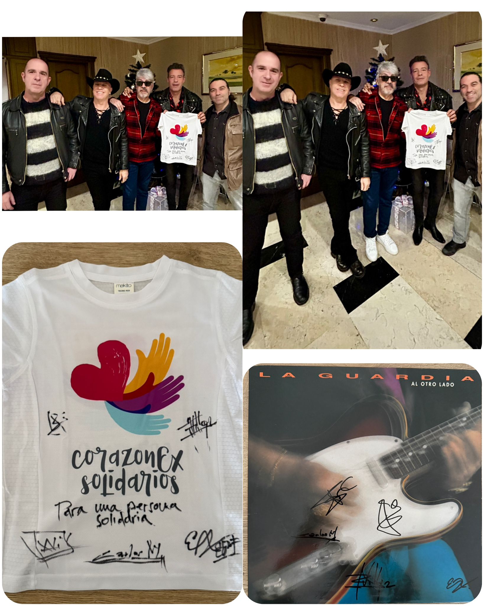 Vinilo y camiseta de CorazonEx Solidarios firmados por Los Secretos el 30 de enero de 2025 en Badajoz.