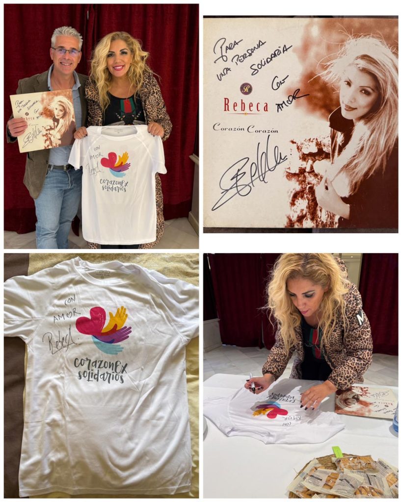 Vinilo y camiseta de CorazonEx Solidarios firmados por Rebeca durante su participación en la IV Gala Solidaria “Ningún niño sin juguete”, celebrada en Badajoz.